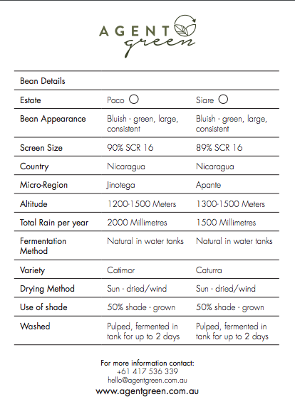 Paco Estate is tucked away deep in the dense Nicaraguan mountains between Matagalpa and Jinotega at an altitude of between 1200 and 1500 meters above sea level. The estate has 80% of its land dedicated to coffee production of Caturra & Catimor, the remaining 20% has been retained as a forest reserve to maintain the natural beauty of the area and to protect its indigenous wild life and fauna.